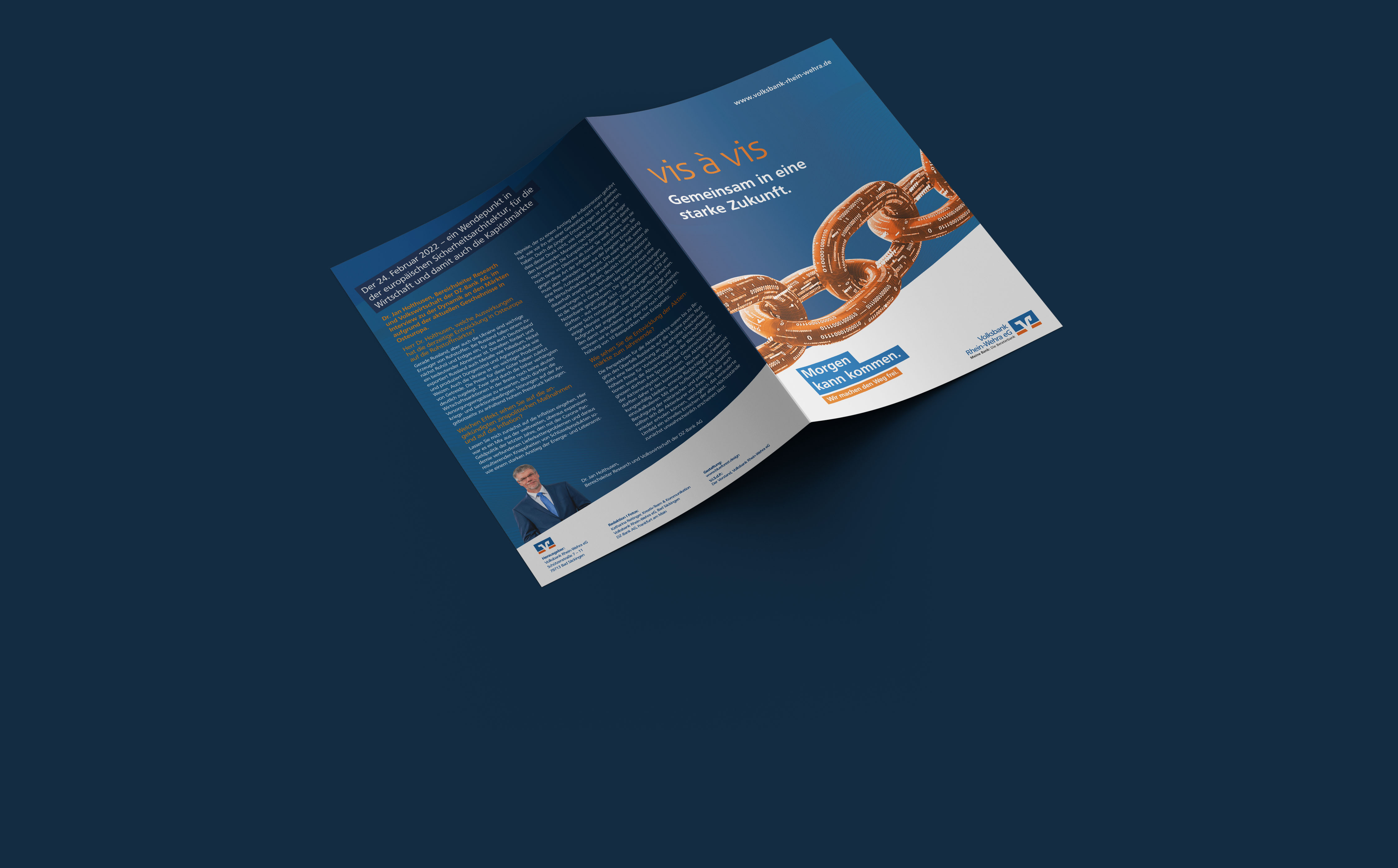 Die Volksbank Rhein-Wehra eG ist eine Genossenschaftsbank. Unsere Region kann auch in Zukunft auf sie zählen. Was sie auszeichnet, ist das Geschäftsmodell. Denn dies ist einzigartig in der Bankenwelt. Aber wofür steht die Marke Volksbank Rhein-Wehra als Ganzes? Wie sieht der rote Faden für eine übergreifende Kommunikation aus?